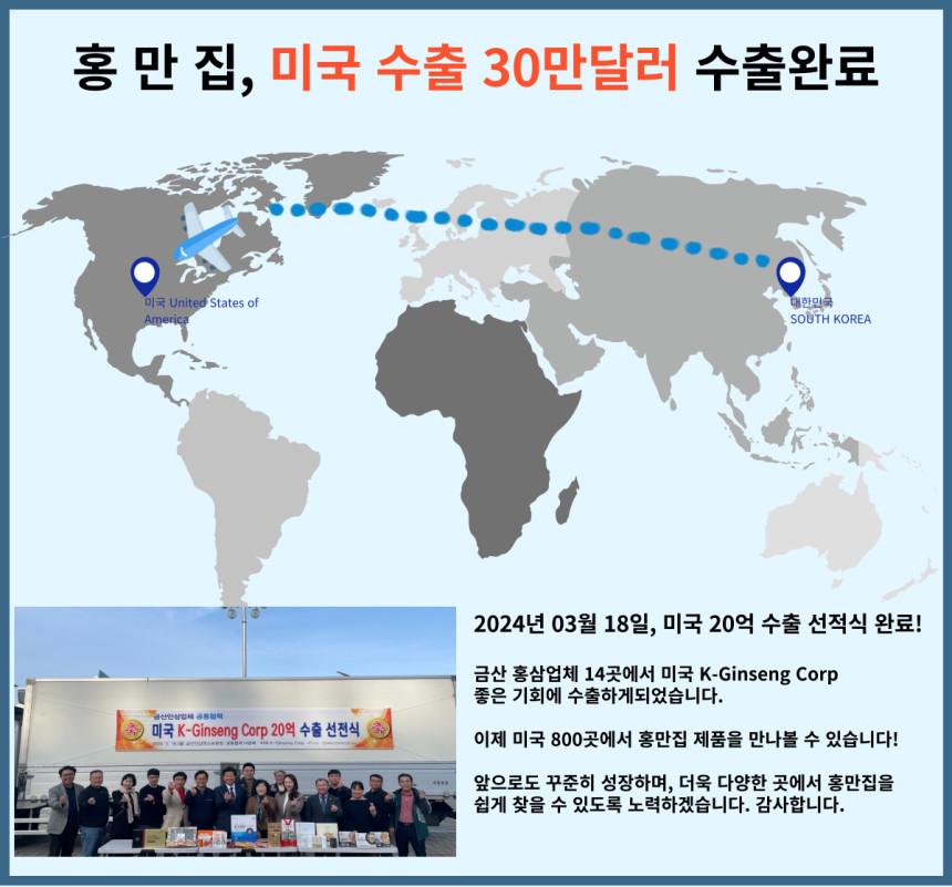 천년홍삼, 30만달러 수출 완료 (2024년03월18일)